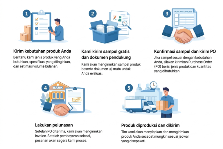 Mulai dari kebutuhan UKM hingga manufaktur skala besar, kami bantu Anda menjaga konsistensi resep dengan kemasan fleksibel, dokumen lab, dan pengiriman tepat waktu.